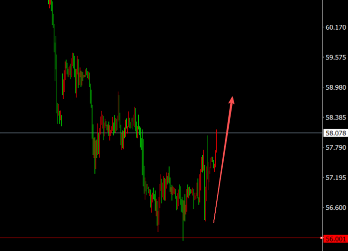 操作建议:日内回调56一线做多 ,目标卡57--58--58.5附近