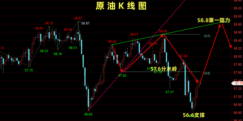 【个人建议:低多为主;WTI分水岭:57.6/桶!以上观点,仅供参考;分散合理布局,严控风险!关注笔者(企鹅:304236956)投资不焦虑 ,交易有方法】